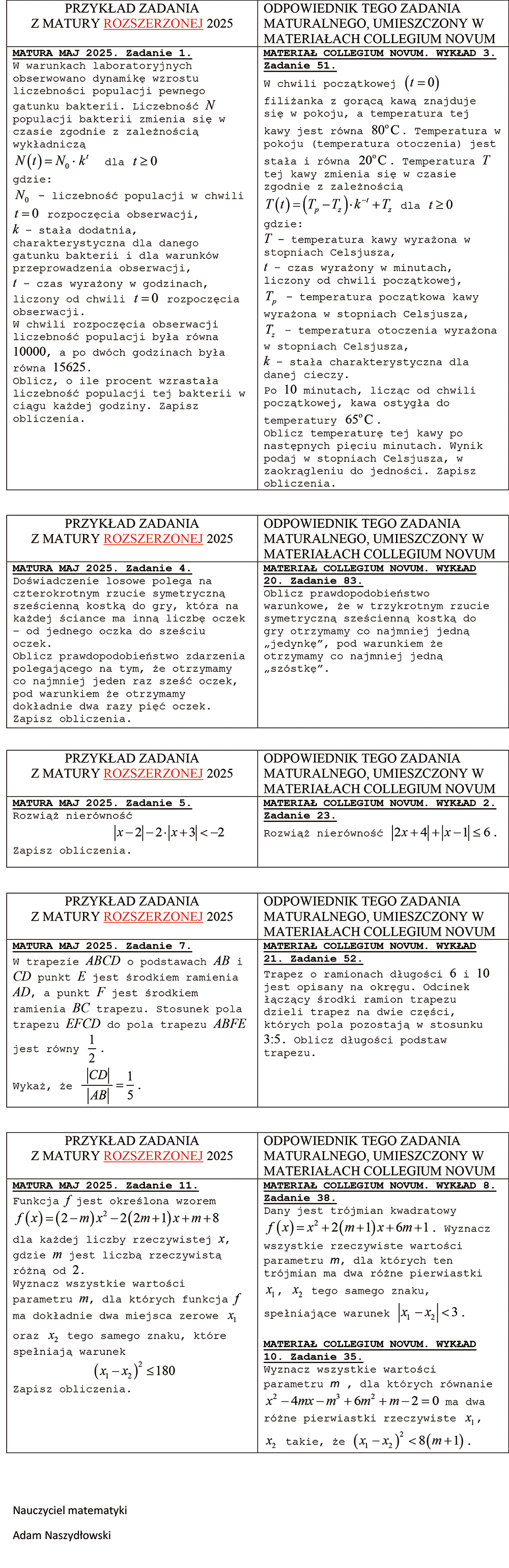 Jeśli potrzebujesz dodatkowej pomocy w nauce matematyki, zapraszamy na nasze kursy z matematyki do matury 2026 i 2027. Zajęcia z doświadczonym nauczycielem są idealnym rozwiązaniem dla tych, którzy potrzebują większego wsparcia i uwagi w trudnych zagadnieniach matematycznych.